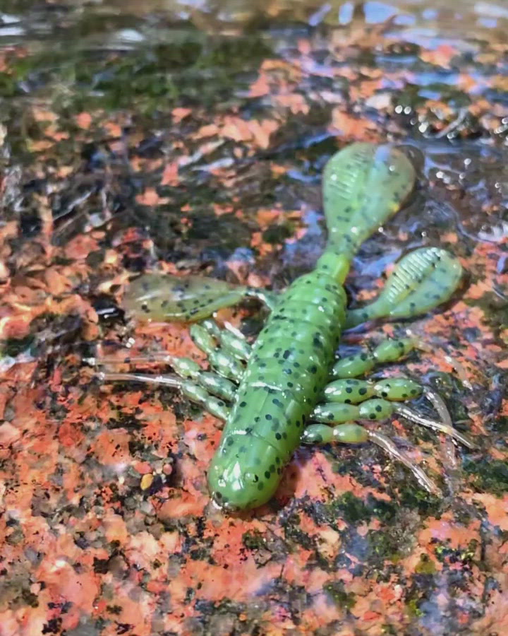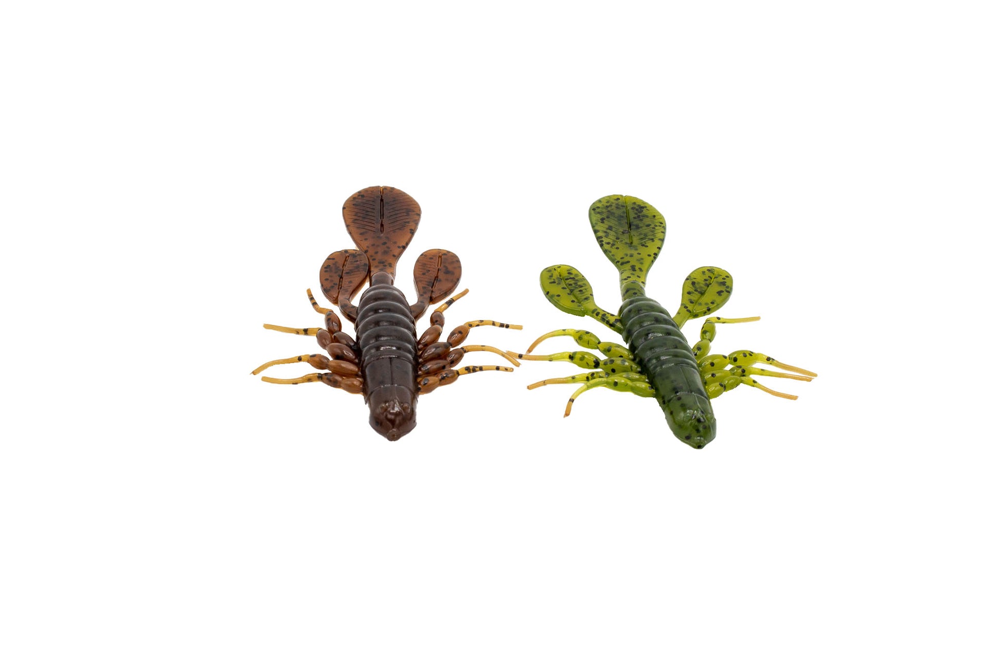 The Bayou Bug is available in two color changing styles. One style changes color from Watermelon to Pumpkinseed and the other style will change color from Smoke to Black on one half of the bait, and from Pearl to Blue on the other half of the bait.