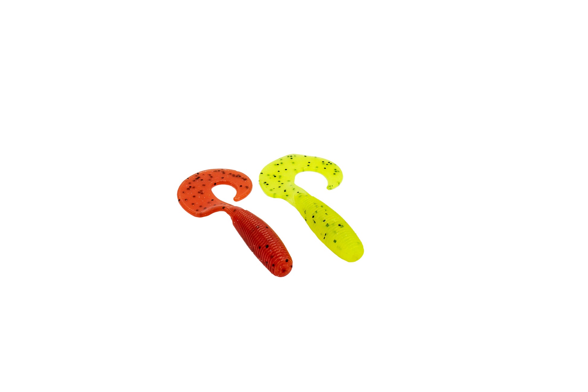 The Gotcha Grub is available in two color changing styles.  One styles is a laminated bait as one half of the bait changes from one color to another, and the other half also changes from one color to another such as Pearl to Blue and Chartreuse to Blood Red. The other style changes from one color to another such Chartreuse to Blood Red.